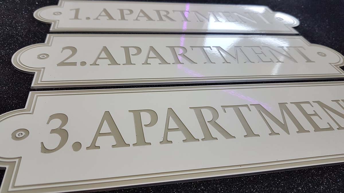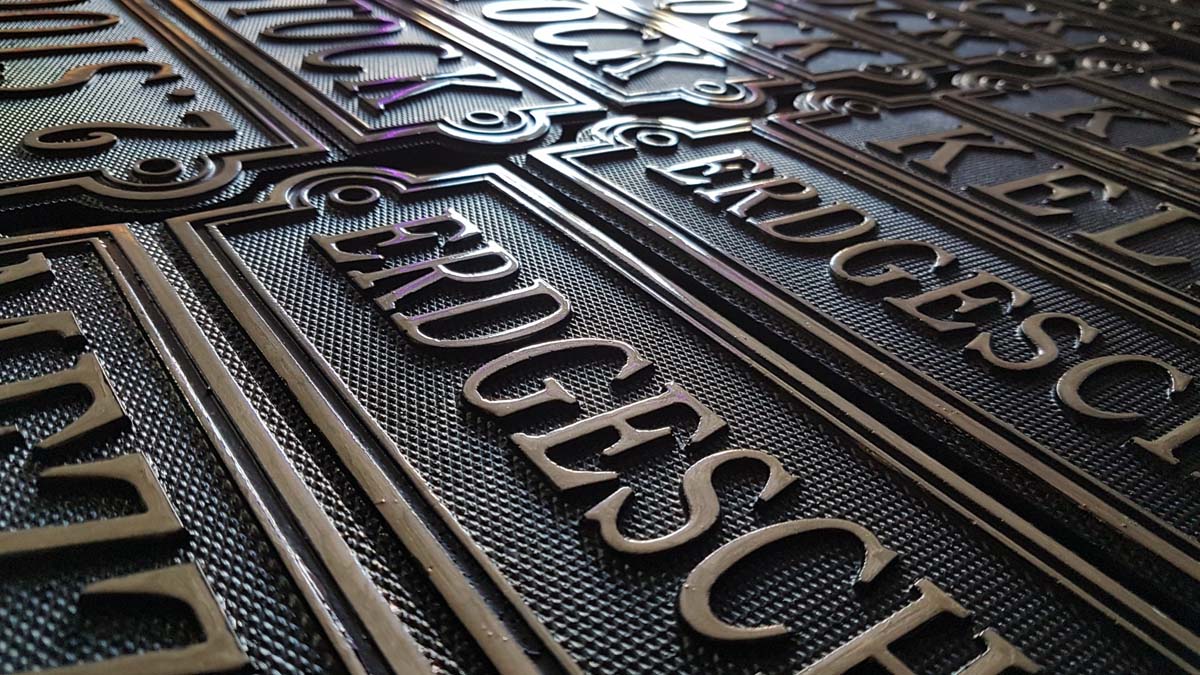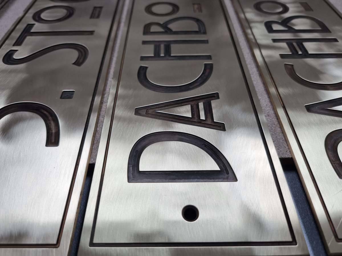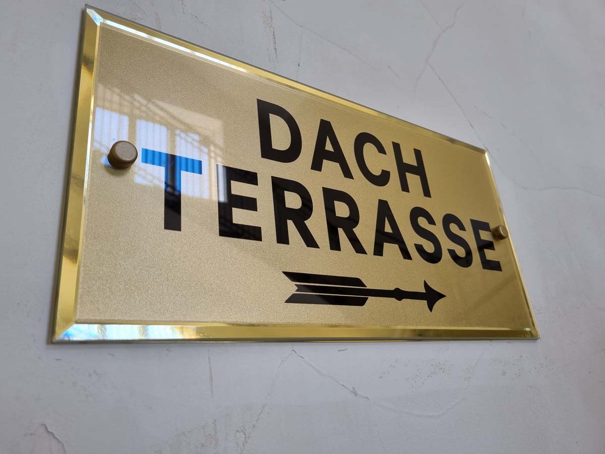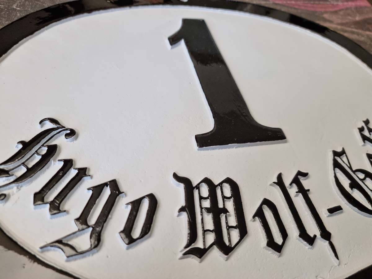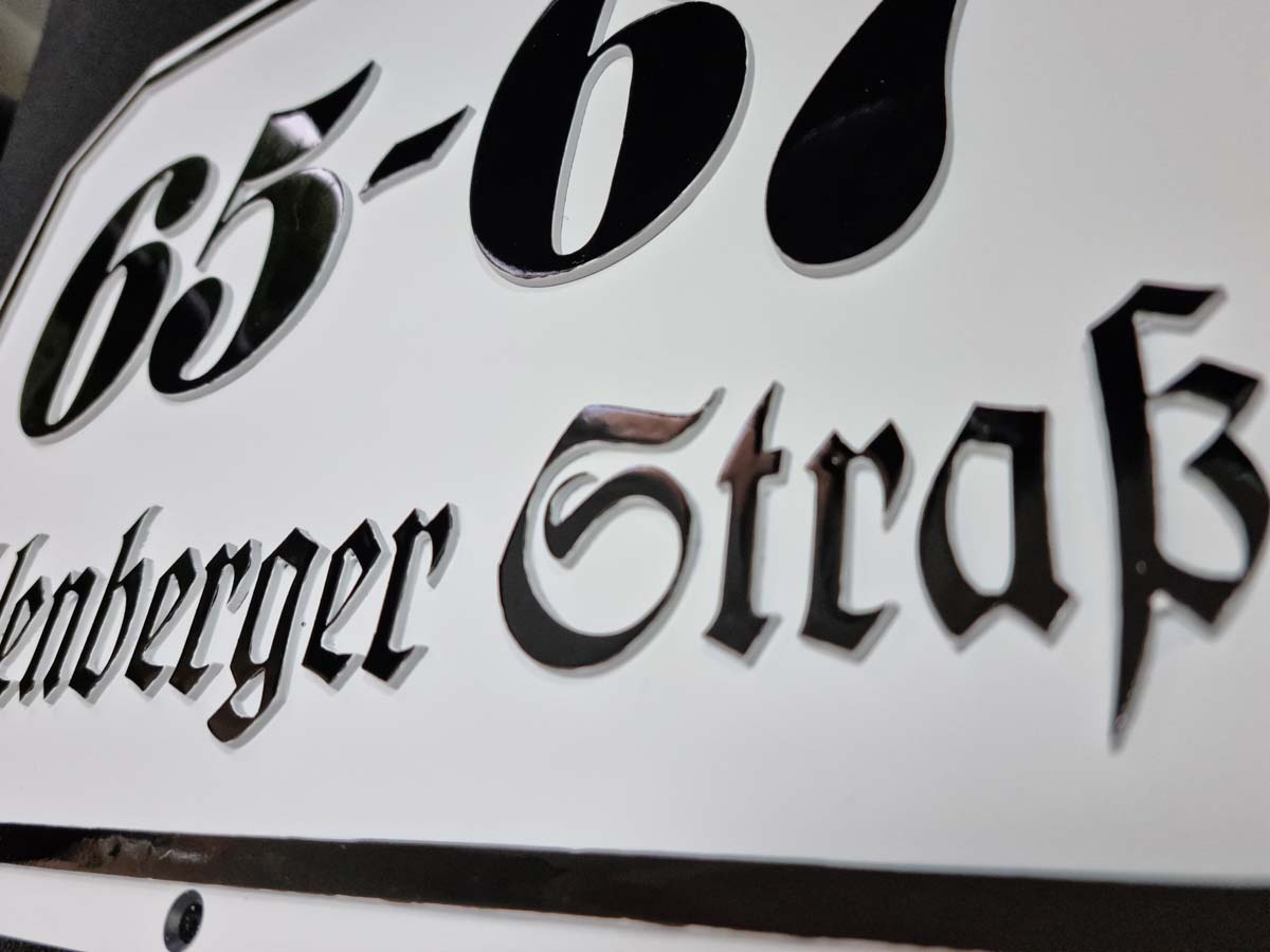 Wir fertigen historische Stockwerkbeschilderung, sowie für jede Architektur passende Beschilderung.